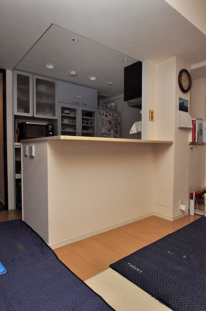 ・分譲マンション内における、ダイニングボード製作/造作カウンター下収納 工事 オーダー家具 施工事例