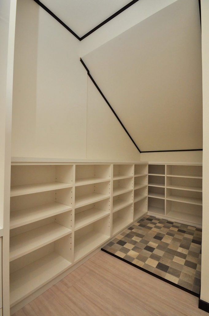 勾配天井の絡むニッチスペースにはシューズクロークを造作させていただきました。
