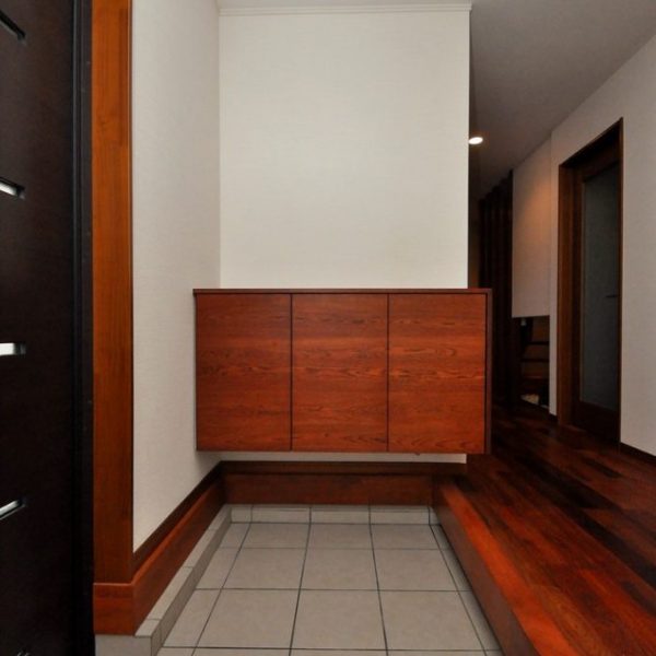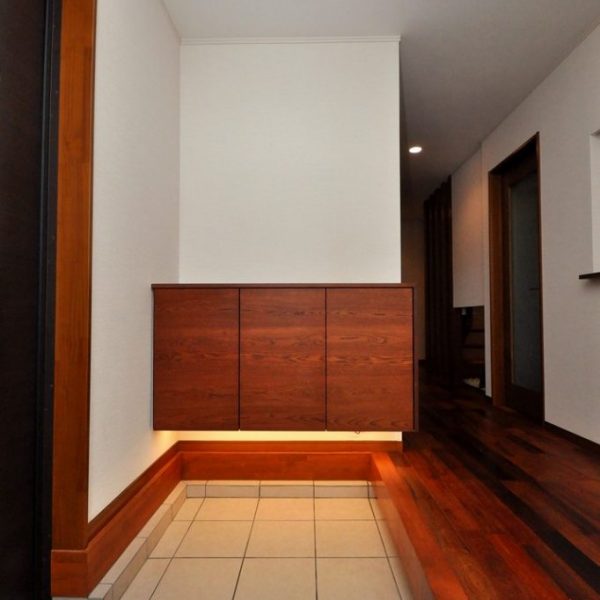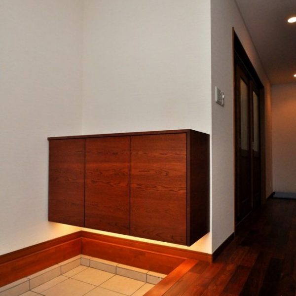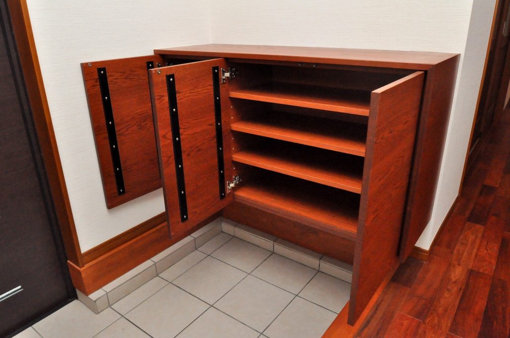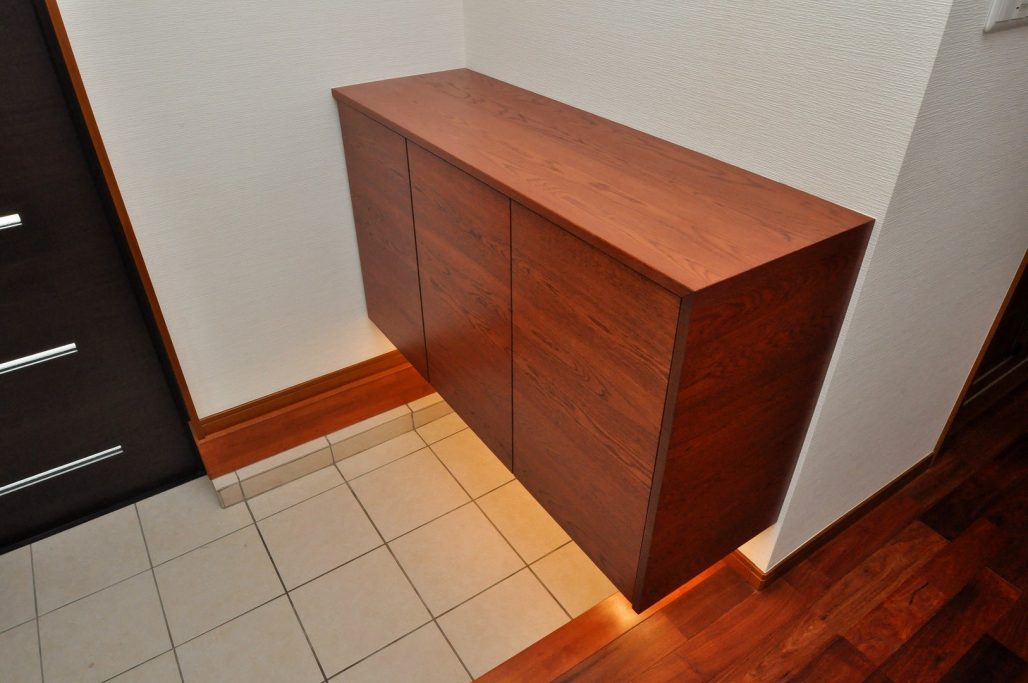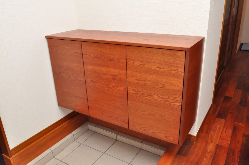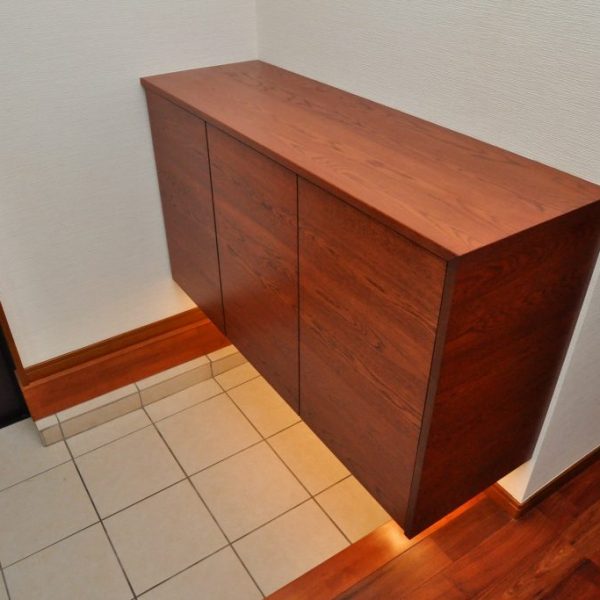 分譲住宅内 エントランスにおける造作壁面収納/家具工事 オーダー家具 製作事例