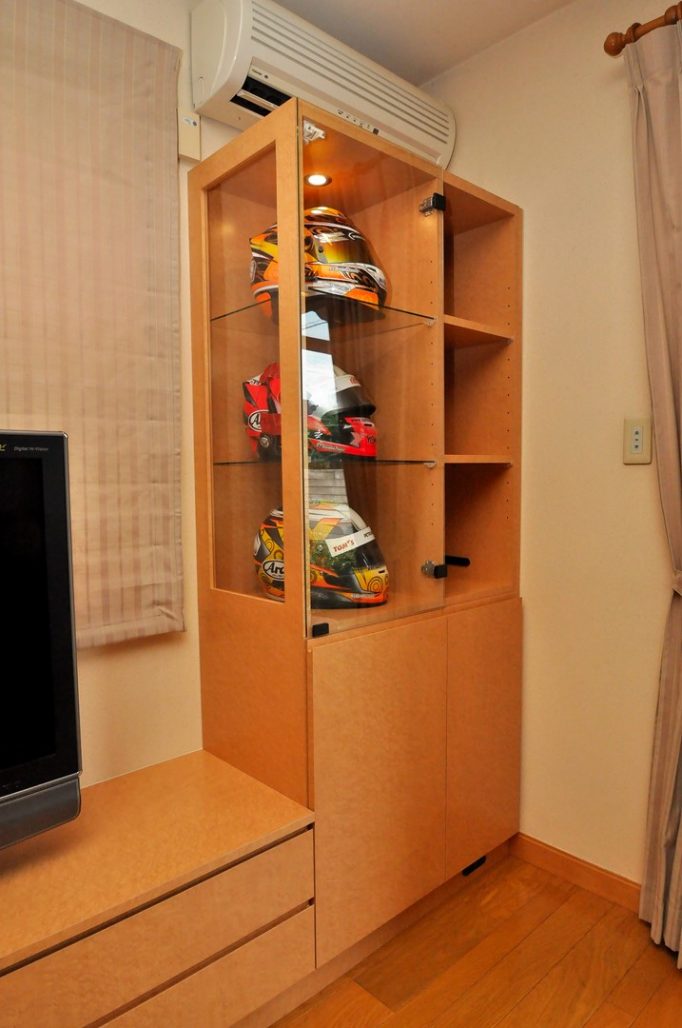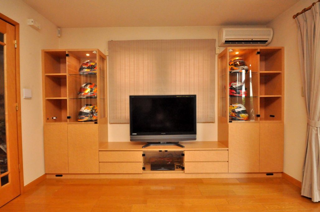 オンリーワンのキュリオケースを設けた造作リビングボード。